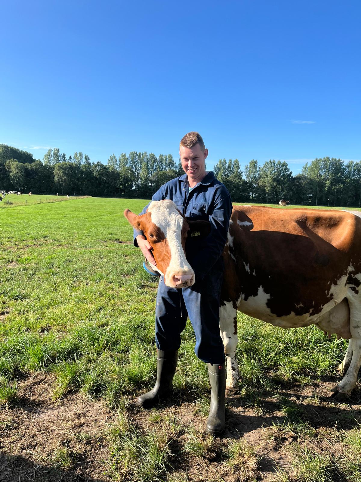 Hoe ouder de koe, des te meer melk ze produceert. Een van de oudste dieren heet Betty en geeft zo’n 15 liter melk per keer. Toen de koeien naar buiten gingen na het melken viel de bijzondere band van boer Anton met Betty op. Al stoeiend liepen de twee achter de rest aan.