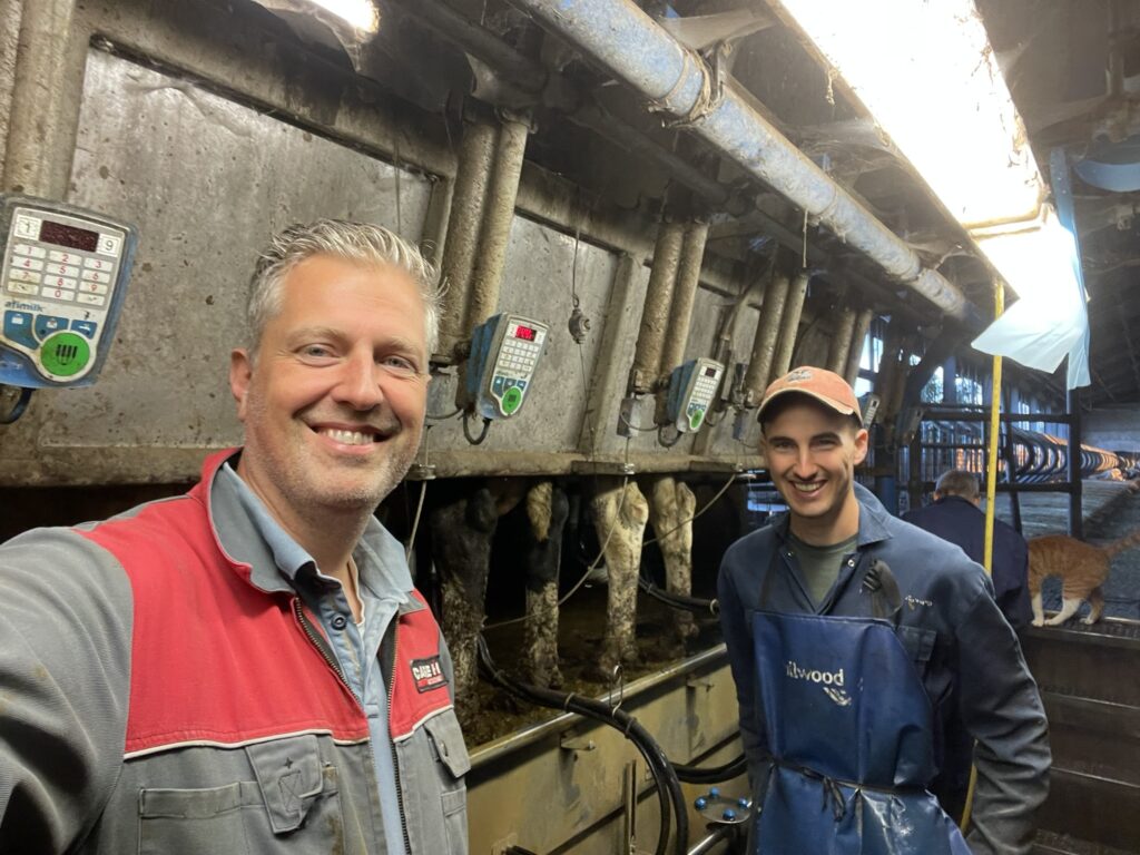 Vorige week vrijdag kwam René Poodt bij mij stage lopen. Hij is opgegroeid op een melkveebedrijf en wilde graag weer een keer mee melken. Om 6:00 zijn we begonnen met koeien opsluiten, wat een mooie gelegenheid is om te vertellen over ons bedrijf en wat mij bezighoudt als jonge boer. Veel onderwerpen waren René al bekend, omdat hij jaren in de melkveesector aan het werk is geweest. Hij vertelde dat hij vorig jaar bij de provincie was gaan werken, omdat hij boeren die vastlopen in beleid verder wil helpen. Felle discussies zijn er niet gevoerd, omdat we het aardig eens waren over de stappen die zowel boeren als de provincie nog moeten zetten om weer perspectief te krijgen. Er moet nog veel gebeuren, maar er gaat ook al veel goed. Heel lang hadden we echter de tijd niet om te ontbijten, omdat de schapen uitgebroken waren. Toen we ze voorzien hadden van een vers stuk gras, was het weer tijd voor koffie en was de ochtend zo om!