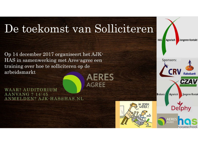Donderdag 14 december om 14:45 uur organiseert het AJK-HAS in samenwerking met Aeres Agree de training “De toekomst van Solliciteren”. Deze training zal gaan over de veranderingen van de arbeidsmarkt, de sollicitatie procedures en hoe je als starter hierop kan inspelen. Daarnaast zal er ook aandacht besteed worden aan het maken van een professioneel LinkedIn profiel.