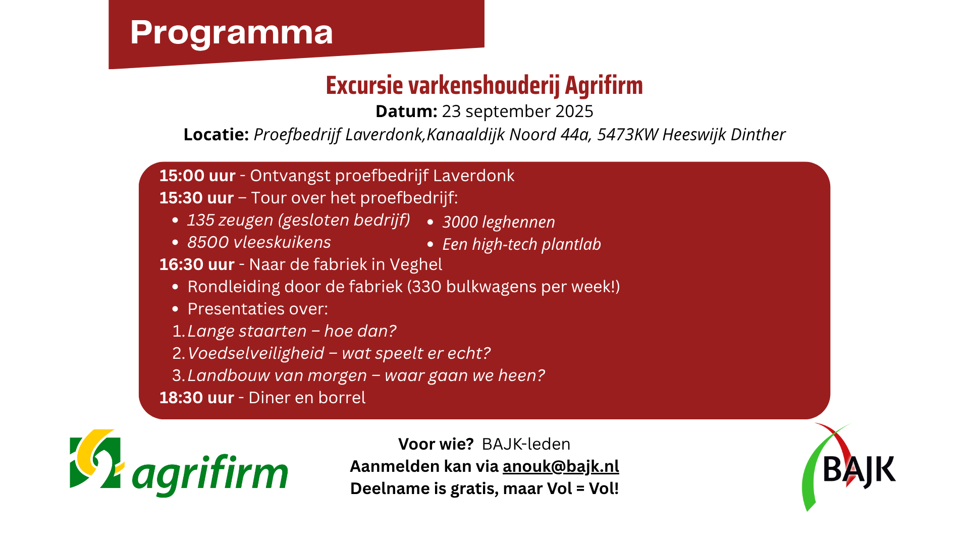 Excursie varkenshouderij Agrifirm en BAJK