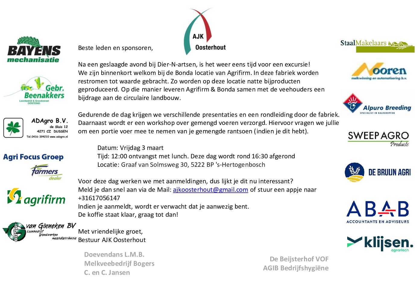 Beste leden en sponsoren, Na een geslaagde excursie bij Agrifirm & Bonda, is het alweer tijd voor onze laatste bijeenkomst van dit seizoen! We hebben deze keer de ABAB bereid gevonden om ons een avond mee te nemen op het gebied van toetreding van bedrijfsovername bij jonge boeren. Dit is een belangrijk onderwerp, want de […]