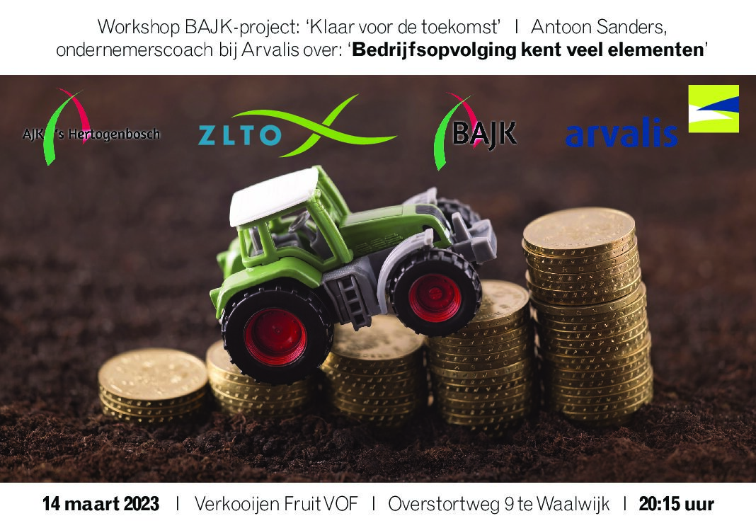 Beste leden, Op 14 maart 2023 organiseren wij vanuit AJK Den Bosch samen met ZLTO De Langstraat een avond in de vorm van een workshop. Deze workshop wordt gegeven door Antoon Sanders, ondernemerscoach bij Arvalis en vindt plaats bij Verkooijen Fruit VOF, Overstortweg 9 te Waalwijk. De workshop heeft als thema: Bedrijfsopvolging kent veel elementen. […]
