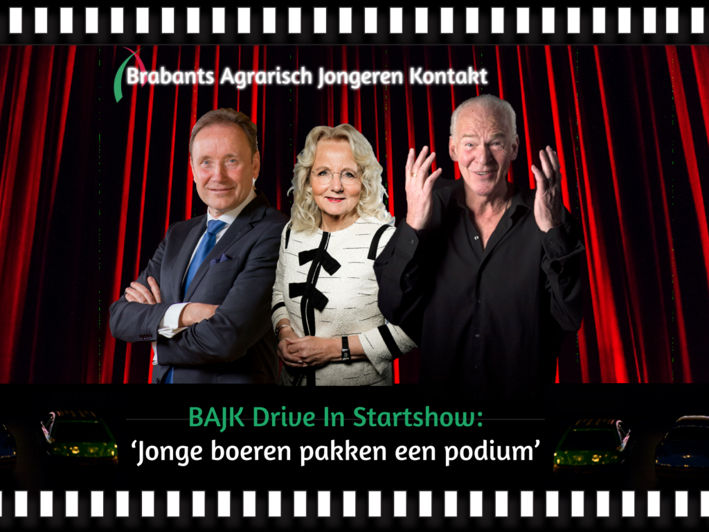 BAJK wil de start van het seizoen 2020-2021 niet stilletjes voorbij laten gaan, daarom organiseert BAJK op woensdag 14 oktober 2020 op de parkeerplaats van de Stapperij in Oirschot: de BAJK Drive In Startshow: ‘Jonge boeren pakken een podium’. Deze bijeenkomst is COVID-19 proof en wordt georganiseerd in overleg met de gemeente en de veiligheidsregio.