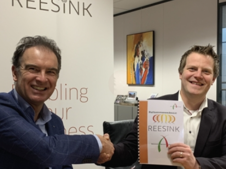 Het Nederlands Agrarisch Jongeren Kontakt (NAJK) heeft er weer een kennispartner bij! Gistermiddag zette NAJK-voorzitter Andre Arfman en Gerrit van der Scheer, CEO Royal Reesink, definitief een handtekening onder een 3-jarig partnerovereenkomst tussen Royal Reesink en NAJK. Royal Reesink kijkt er naar uit om nog intensiever in contact te komen met de jonge agrarische ondernemers.