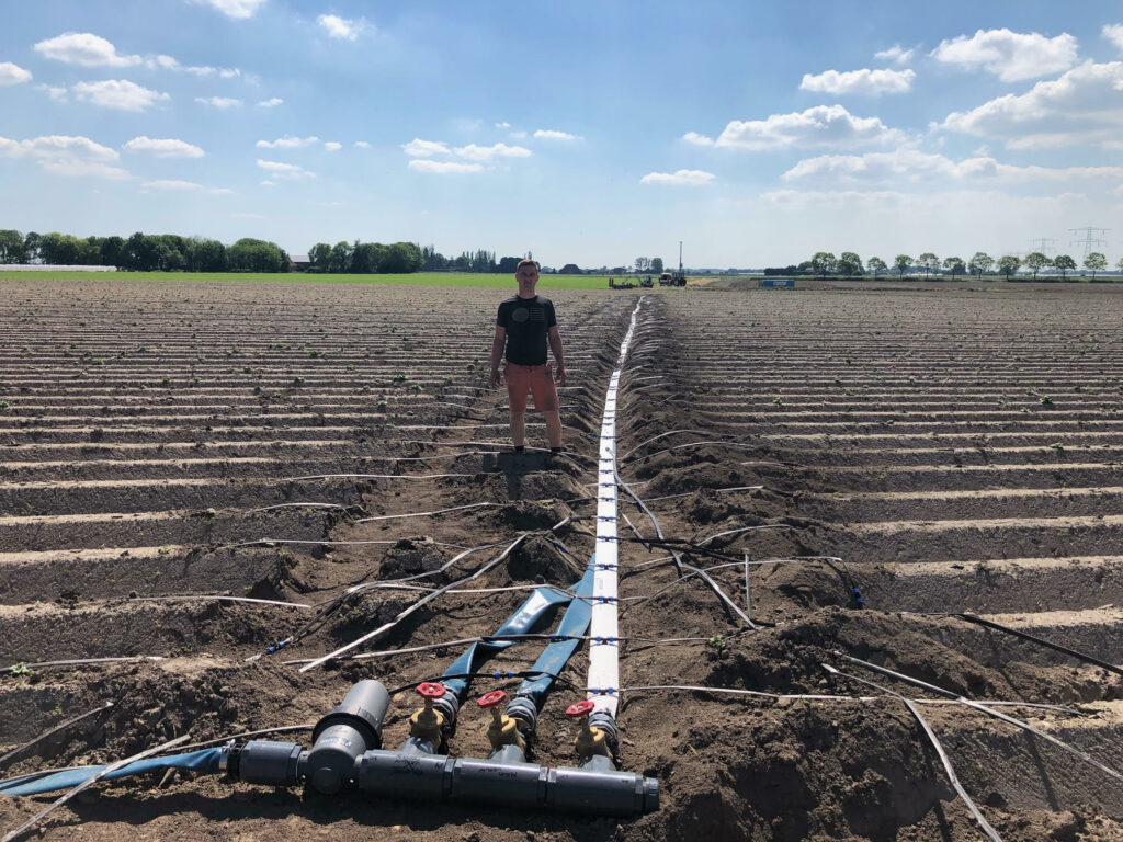 De teeltadviseurs van Vlamings beschikken inmiddels over de nodige kennis en praktijkervaring. Zij begeleiden telers bij de aanleg van de druppelslangen. “We streven naar een zo homogeen mogelijke afgifte. Achteraan op het perceel wil je dezelfde hoeveelheid water als vooraan op het perceel”. De slangen kunnen op of in de grond worden gelegd. Dat laatste heeft onze voorkeur, omdat ze dan goed op z’n plek blijven en vogels, hazen en ander wild er dan niet bij kan”, aldus Marc van der Bol van Vlamings. Voor meer info neem je contact op met een van de teeltadviseurs van Vlamings. Kijk op: https://vlamings.nl/